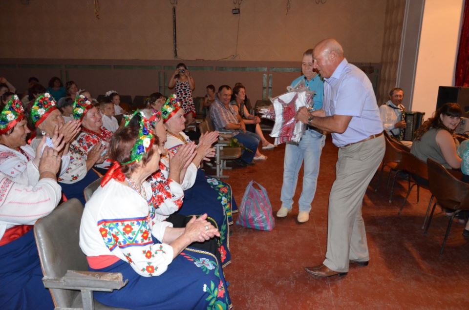І звичайно, з нагоди дня народження колективу, Анатолій Миколайович вручив самодіяльним артистам цінні подарунки – це 10 довгоочікуваних артистами сценічних костюмів.